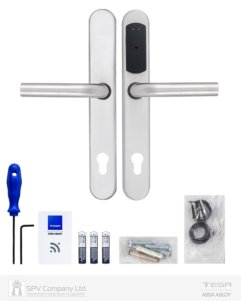 - Можливість поєднання в одної системі з іншими електронними замками та пристроями доступу TESA (настінні зчитувачі карт, сейфи, замки для шаф, електронні циліндри)