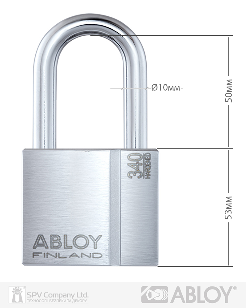 Матеріал: корпус-загартована сталь, дужка-загартована сталь із вмістом бору. Діаметр дужки - 10 мм. Висота дужки - 50 мм. Ширина дужки - 28 мм.