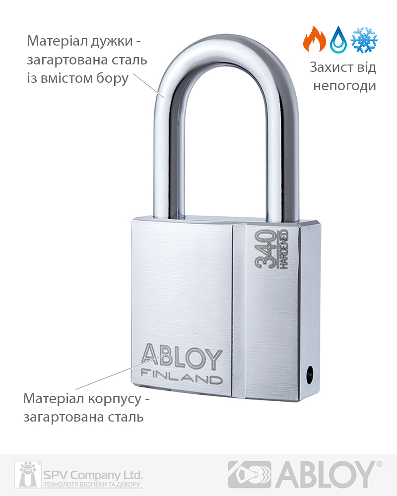 Висячий замок ABLOY PL 340 із загартованої сталі (клас 4).