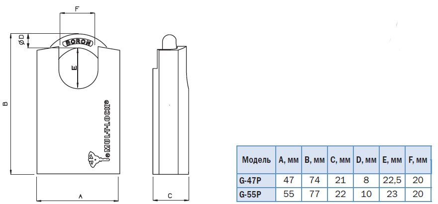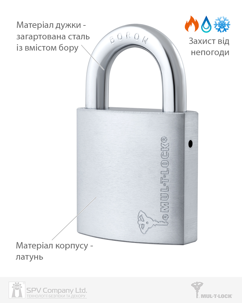 Матеріал: замок-латунь, дужка-загартована сталь із вмістом бору.