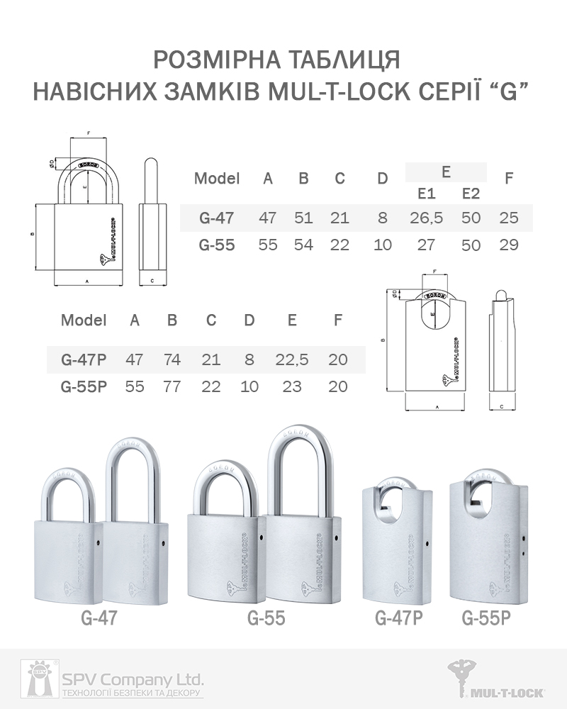 Універсальний висячий замок MUL-T-LOCK G55 з латуні з захисним протектором дужки для трейлерів, шафок, трансформаторних підстанцій, воріт, гаражів і т.д.