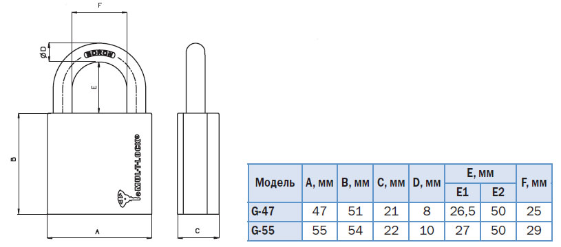 Матеріал: замок-латунь, дужка-загартована сталь із вмістом бору.