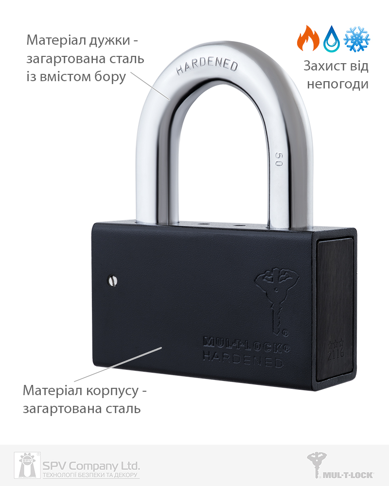 Матеріал: замок-загартована сталь, дужка-загартована сталь із вмістом бору.