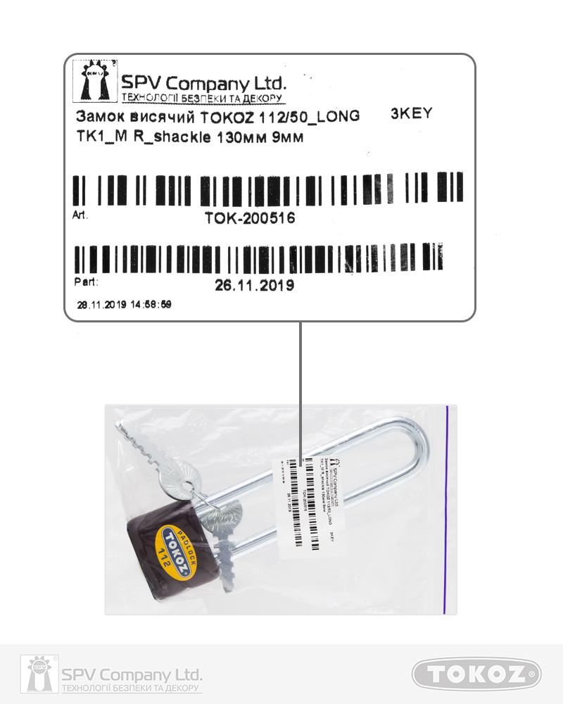• Покриття: корпуc замка-фарба; дужка – хром;