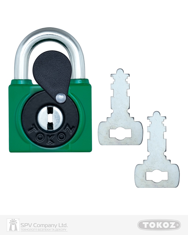 Замок висячий TOKOZ 800/40L 2KEY TK2_M NR_shackle 23мм 7мм PB зелений