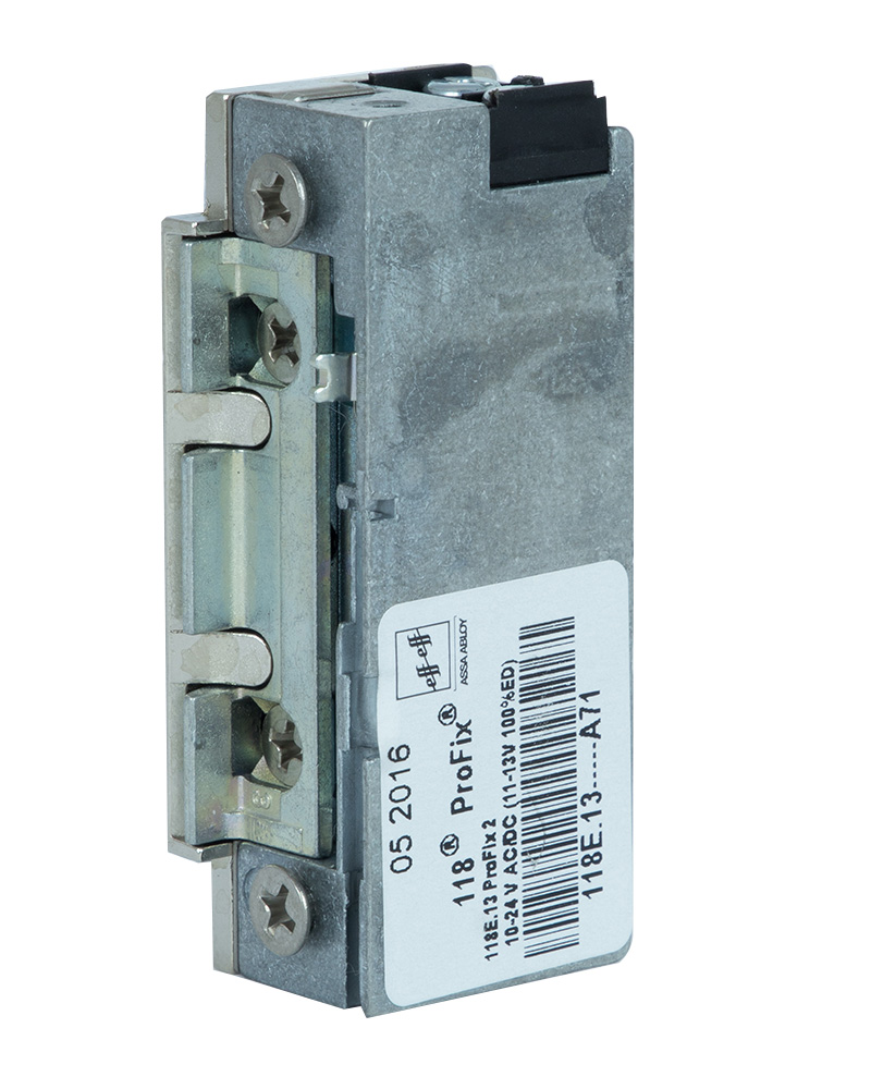 Защіпки електромеханічні з технологією Profix2 серії 118.13/128.13/138.13 є найменшими у світі за розмірами стандартними універсальними електромеханічними защіпками. ProFix – це поєднання дверної заскочки з регулюванням язичка FaFix та інтегрованої направляючої для косої заскочки замка, що кріпиться безпосередньо до корпуса защіпки. Завдяки радіальному язичку та інтегрованої направляючій защіпки Profix2 серії 118.13 можуть бути встановлені у металеві, дерев’яні та профільні двері з мінімальною відстанню від косого язичка механічного замка до краю рами всього 4 мм. Сумісні з більшістю стандартних врізних замків.