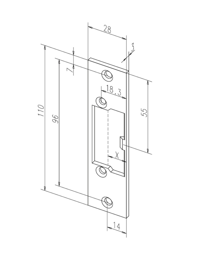 Коротка зворотна планка без отвору для основного ригеля замка. Призначена для встановлення електромеханічних защіпок у дерев’яні та металеві рами. Сумісна з електромеханічними защіпками EFF EFF серії 611/621