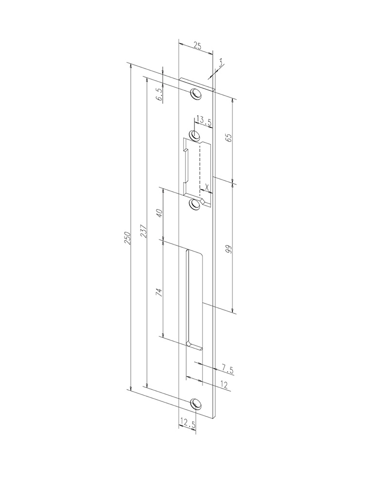 - Розміри (Висота х Ширина х Товщина), мм: 250 х 25 х 3